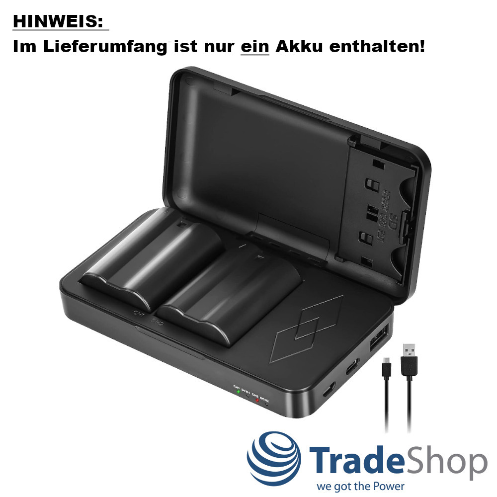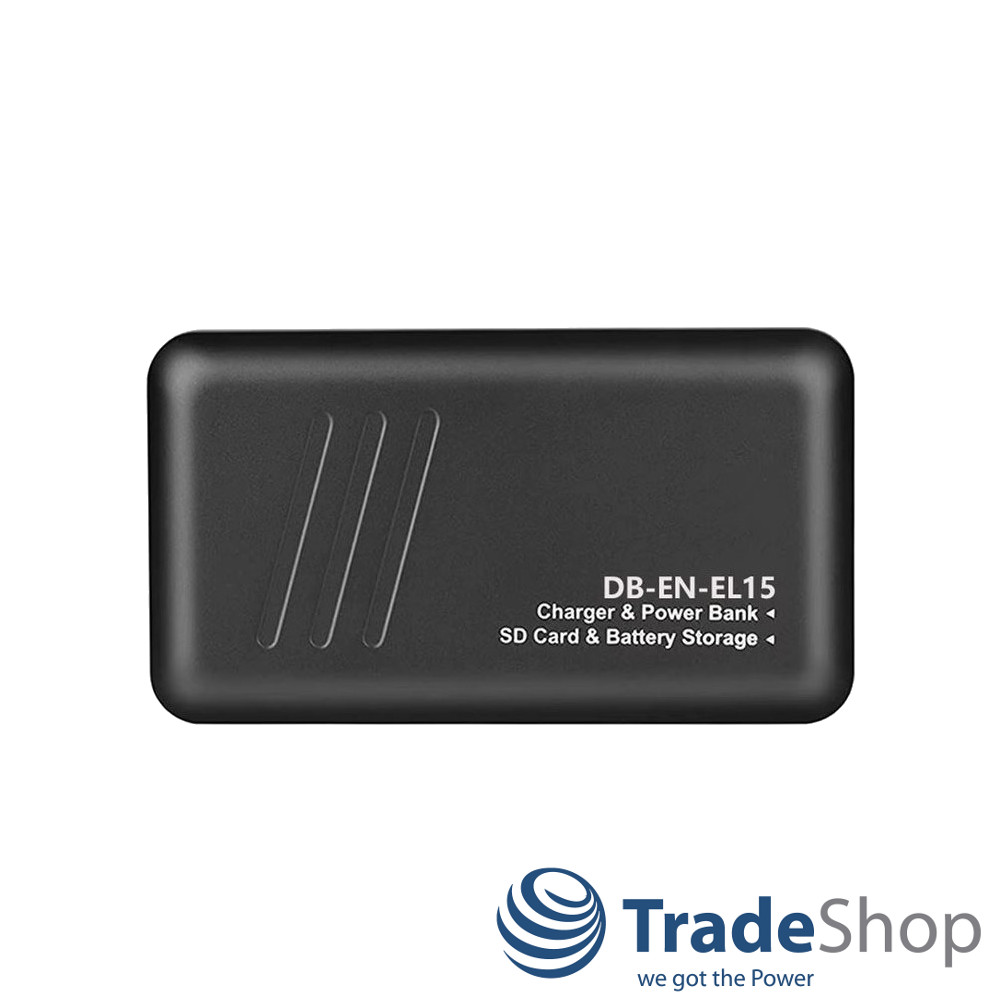 2in1: Akku + Dual Ladegerät mit Powerbank-Funktion für Nikon EN-EL15, D750