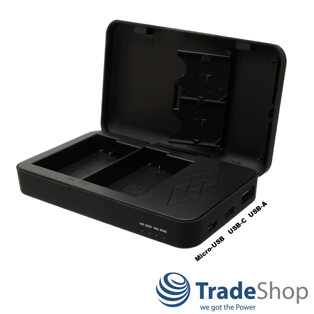 - zusätzlich können 2 SD-Karten in einem Steckplatz im Ladegerät aufbewahrt werden