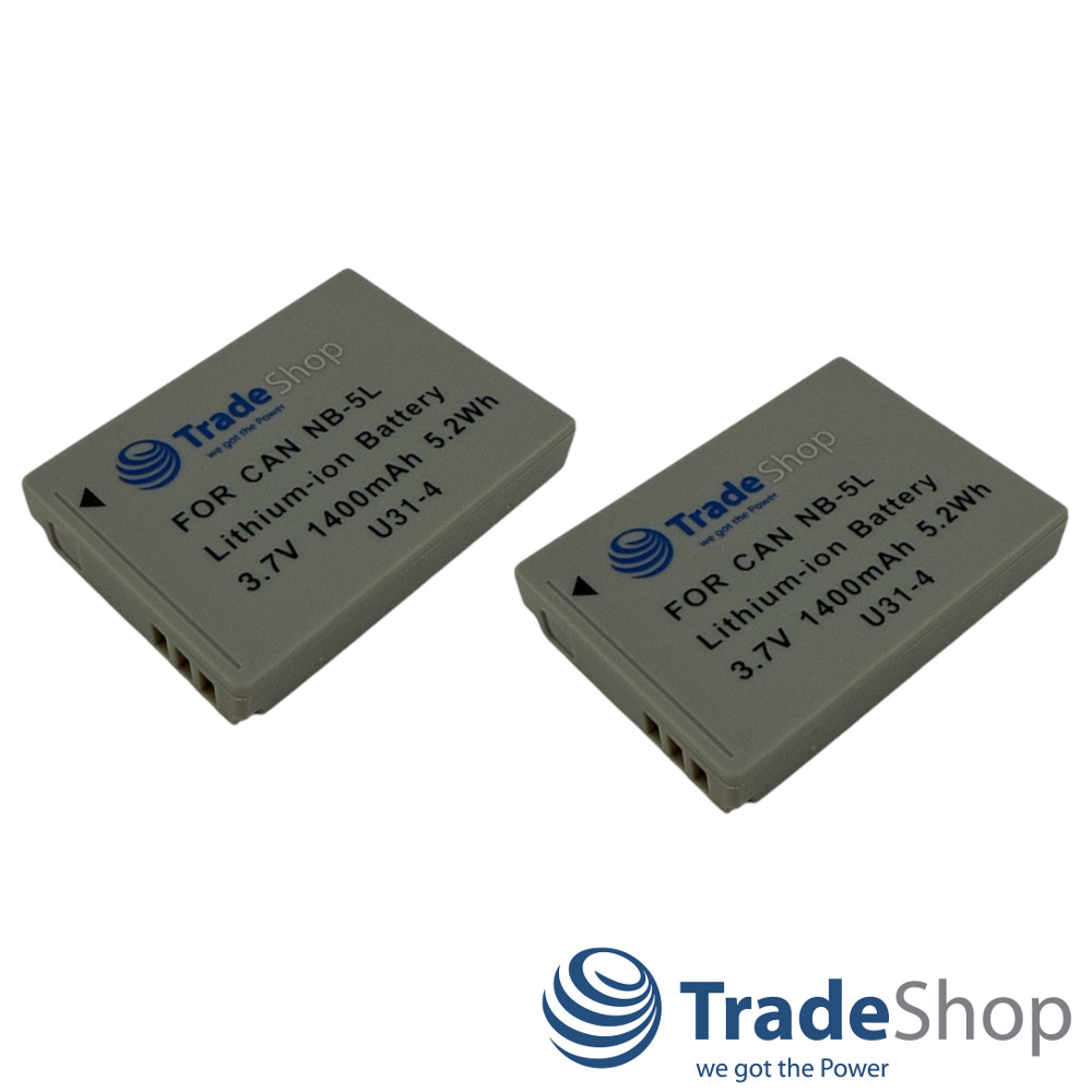 2x Akku 1400mAh ersetzt NB-5L NB-5LH NB5L NB5LH für viele Canon Digital-Kameras