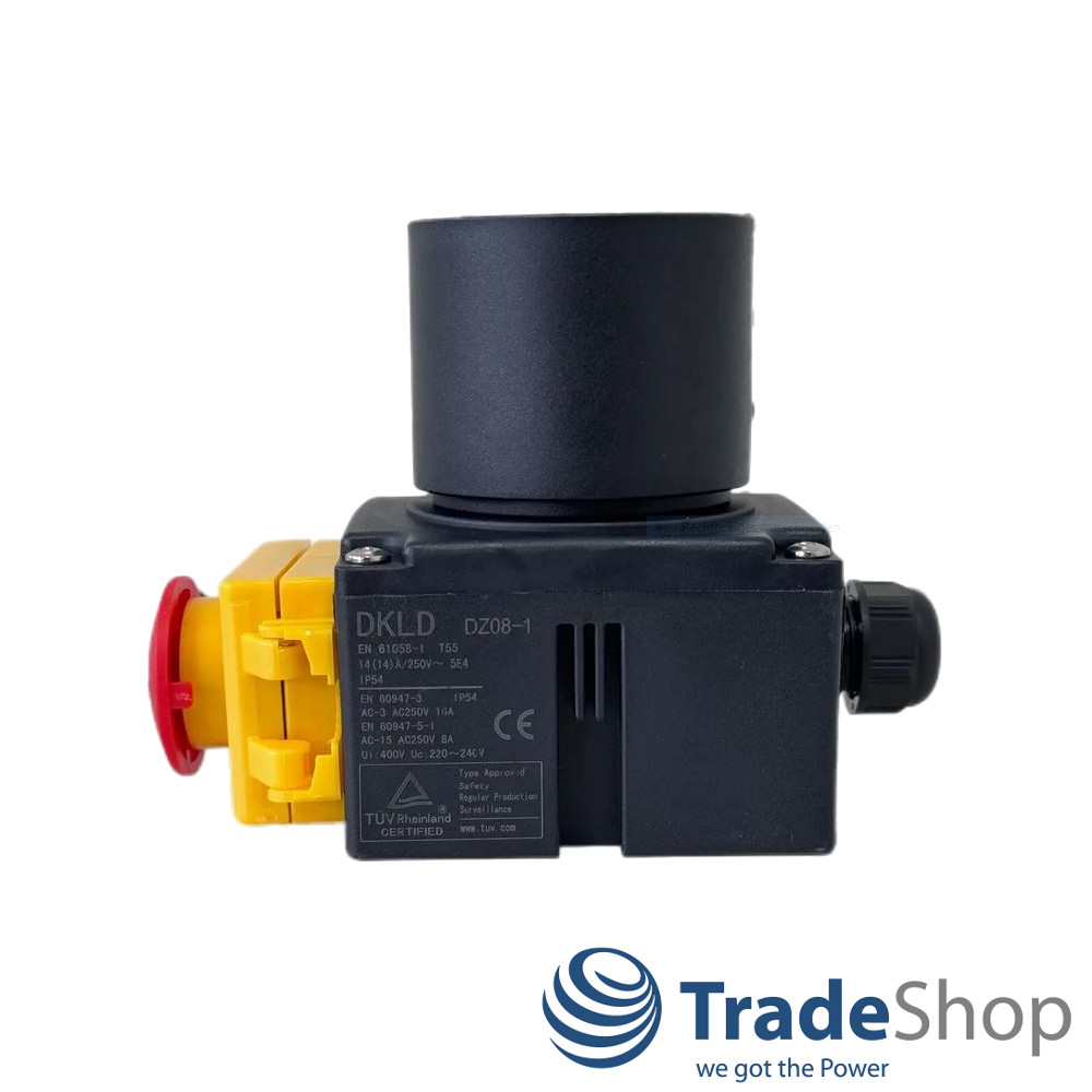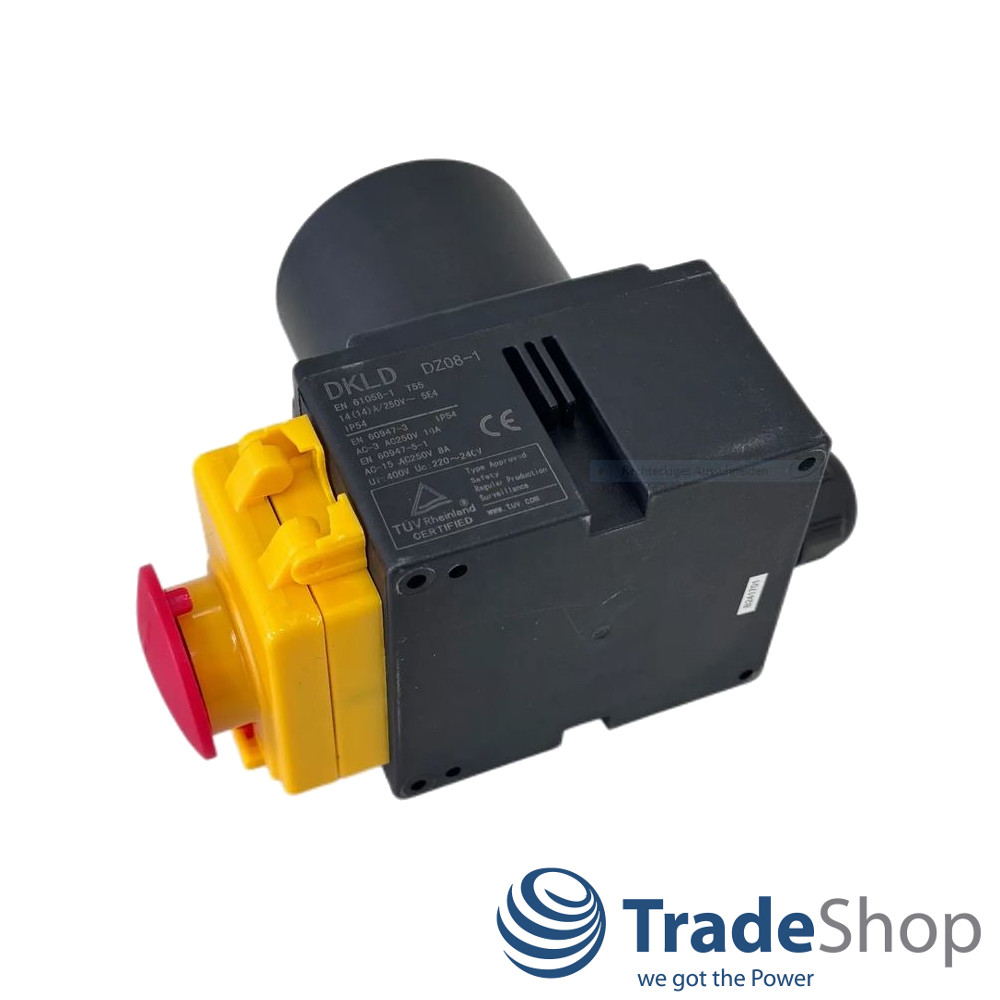 Produktinformationen "DZ08-1 230V Schalter-Stecker Kombi mit Notaus-Klappe für einphasige Maschinen"