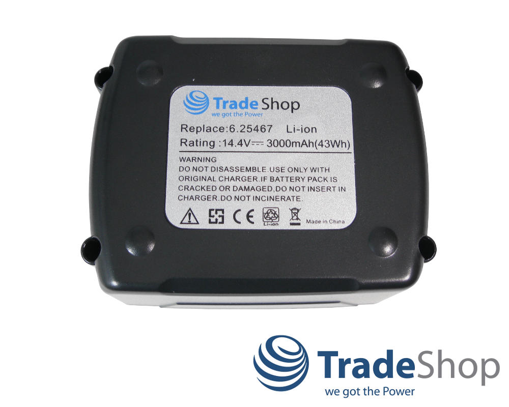 - Hochleistungs Li-Ion Akku, 14,4V / 3000mAh / 43Wh